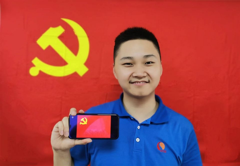 我和黨旗共合影,黨的光輝在我心。